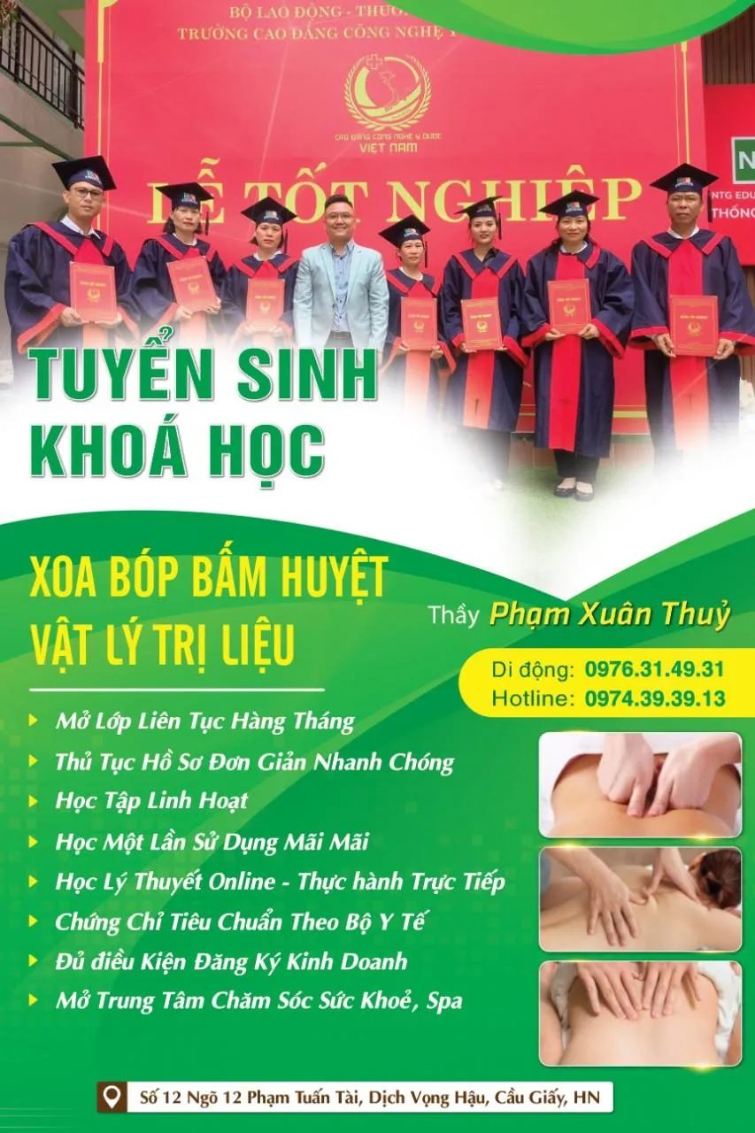 Nắm vững kỹ năng chăm sóc sức khỏe với kỹ thuật xoa bóp, bấm huyệt, và sử dụng máy vật lý trị liệu, hỗ trợ mở spa, trung tâm chăm sóc sức khỏe và được cấp chứng chỉ chuẩn bộ y tế.