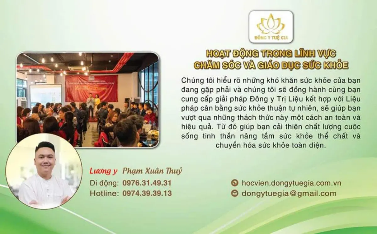Từ niềm đam mê chăm sóc sức khỏe - Đông Y Tuệ Gia đã ra đời để cung cấp các giải pháp Đông Y trị Liệu kết hợp các Liệu pháp chữa lành cơ thể thuận tự nhiên, bên cạnh đó Tuệ Gia còn tổ chức Đào tạo các Khóa học mang lại giá trị công ích đến cộng đồng để hướng đến giải pháp CÂN BẰNG SỨC KHỎE TOÀN DIỆN. :